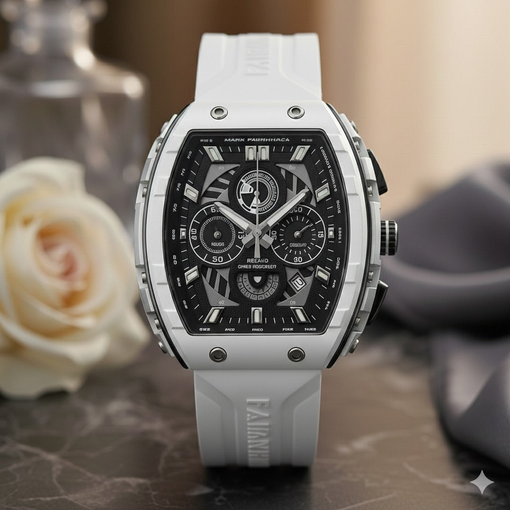 Men’s Premium Sport Chronograph – White Silicone Strap