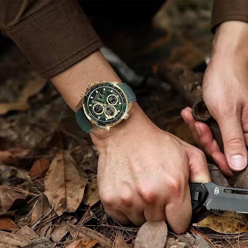 Multi-functional Quartz Men's Watch With Genuine Leather Strap